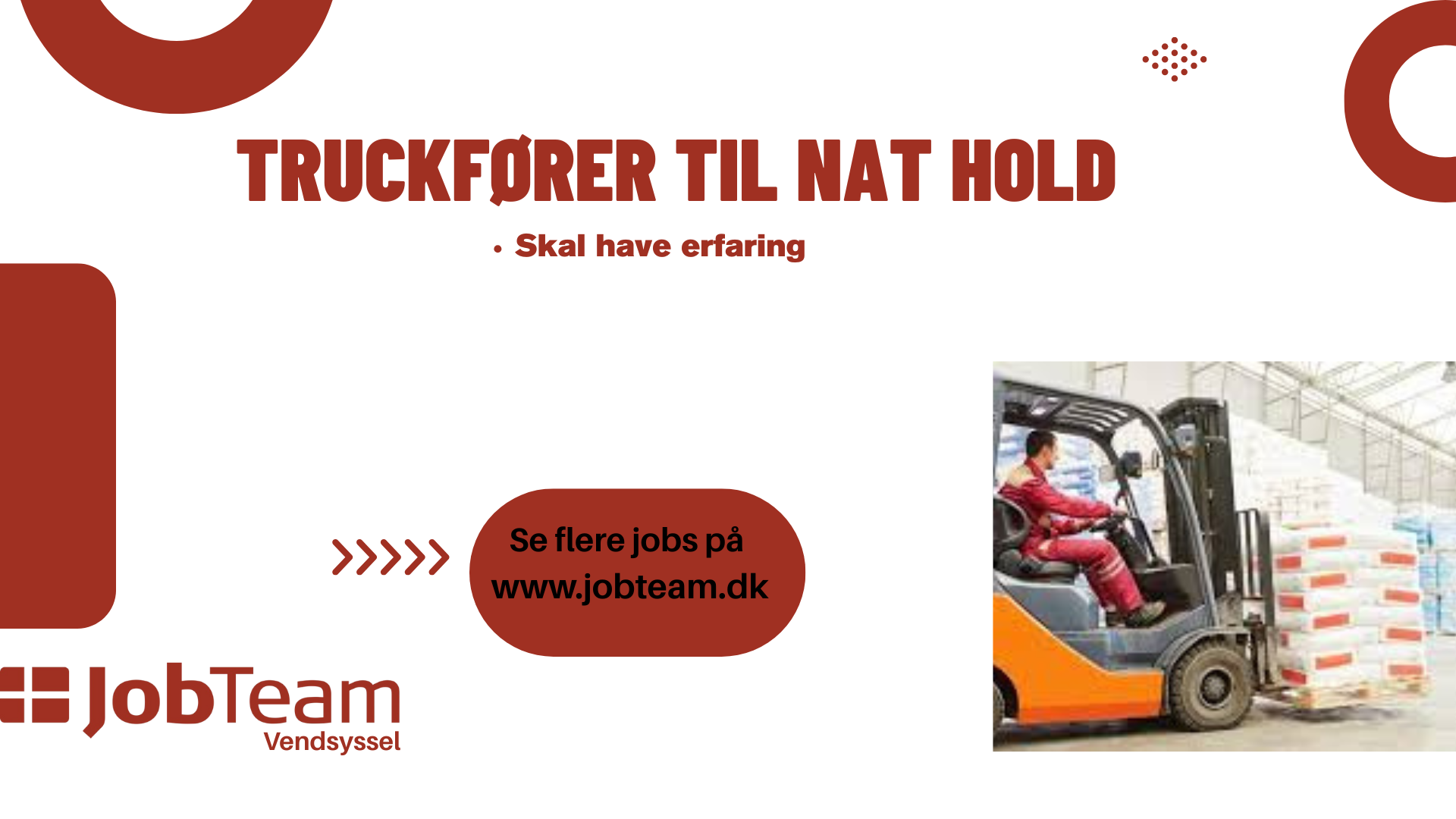 Vi søger en erfaren truckfører til et nathold i Vrå. Som truckfører er du med til at sikre en effektiv håndtering af materialer og varer i løbet af natten.