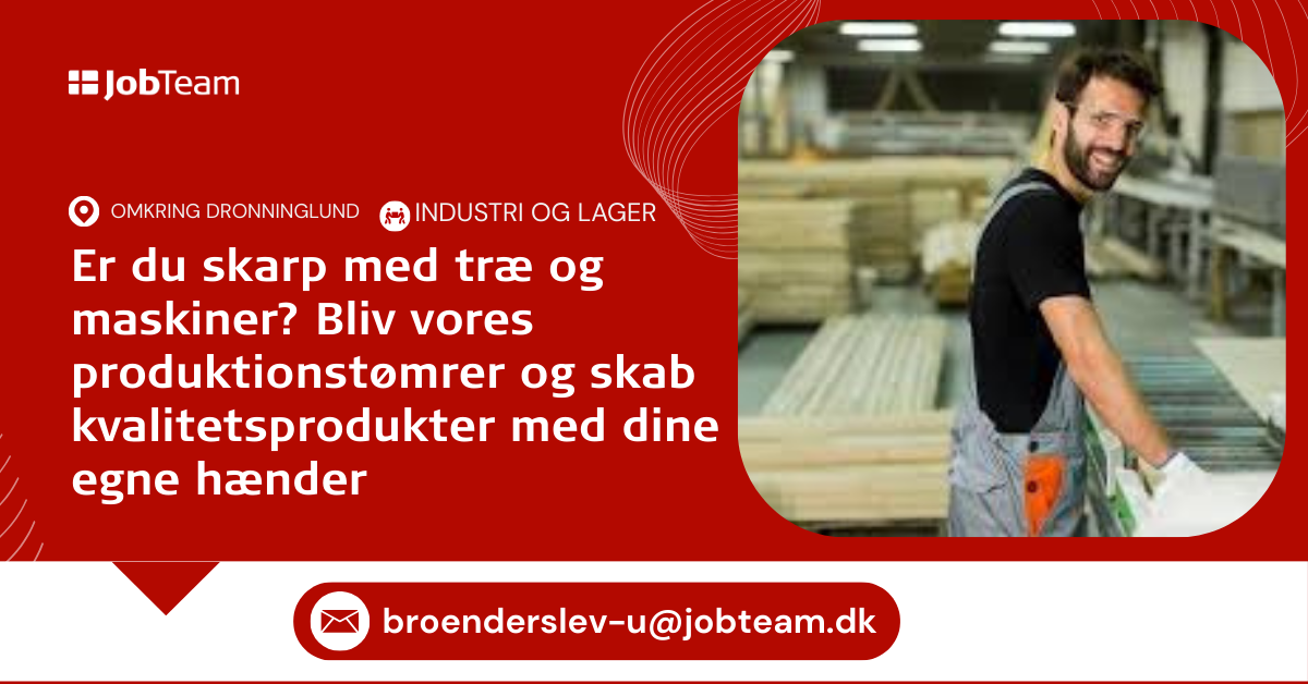 Send os en ansøgning på broenderslev-u@jobteam.dk Husk at skrive "Produktionstømrer" i emnefeltet.