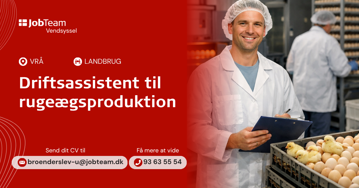 Vi søger en driftsassisten til rugeægsproduktionen i Vrå, kan du holde overblikket samt håndtere både høns og kollegaer, så er det dig vi mangler.