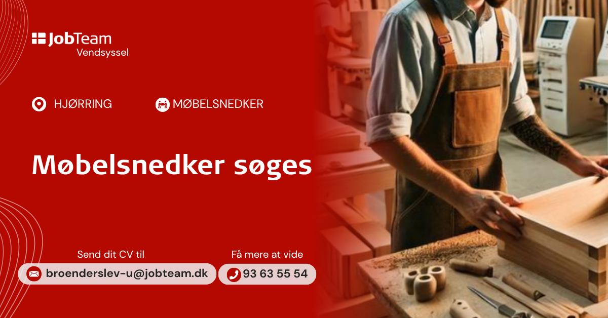 Lyder dette som noget for dig og er du en dygtig maskinsnedker så send dit CV til broenderslev-u@jobteam.dk. mrk: "Møbel"