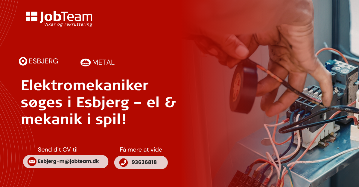 Kontakt os på mail: esbjerg-m@jobteam.dk mærket med "Elektromekaniker".