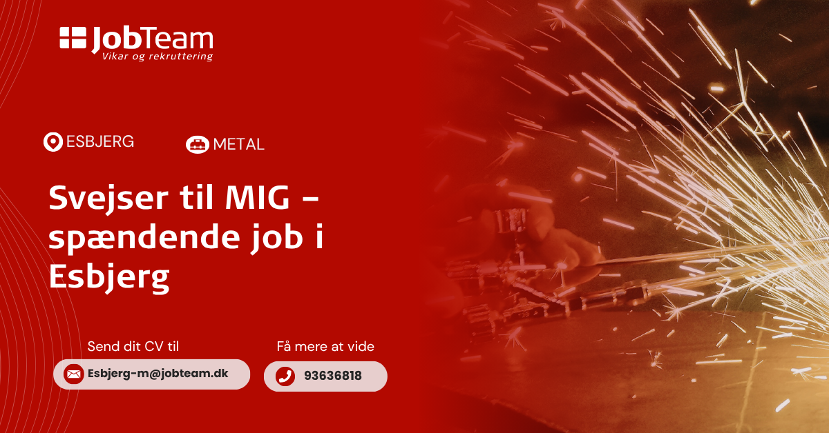 Kontakt os på mail: esbjerg-m@jobteam.dk for at søge jobbet - Eller på tlf.: +45 93 63 68 18