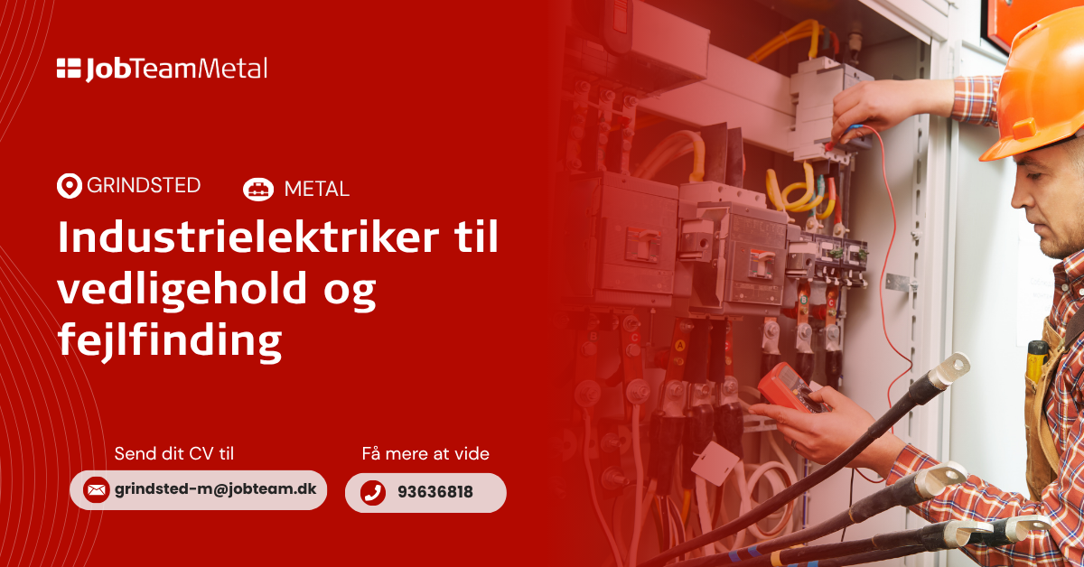 Så har du erfaring med at lave vedligehold, fejlfinding, service eller andet el-teknisk, så send dit CV til grindsted-m@jobteam.dk mærket "Industrielektriker".