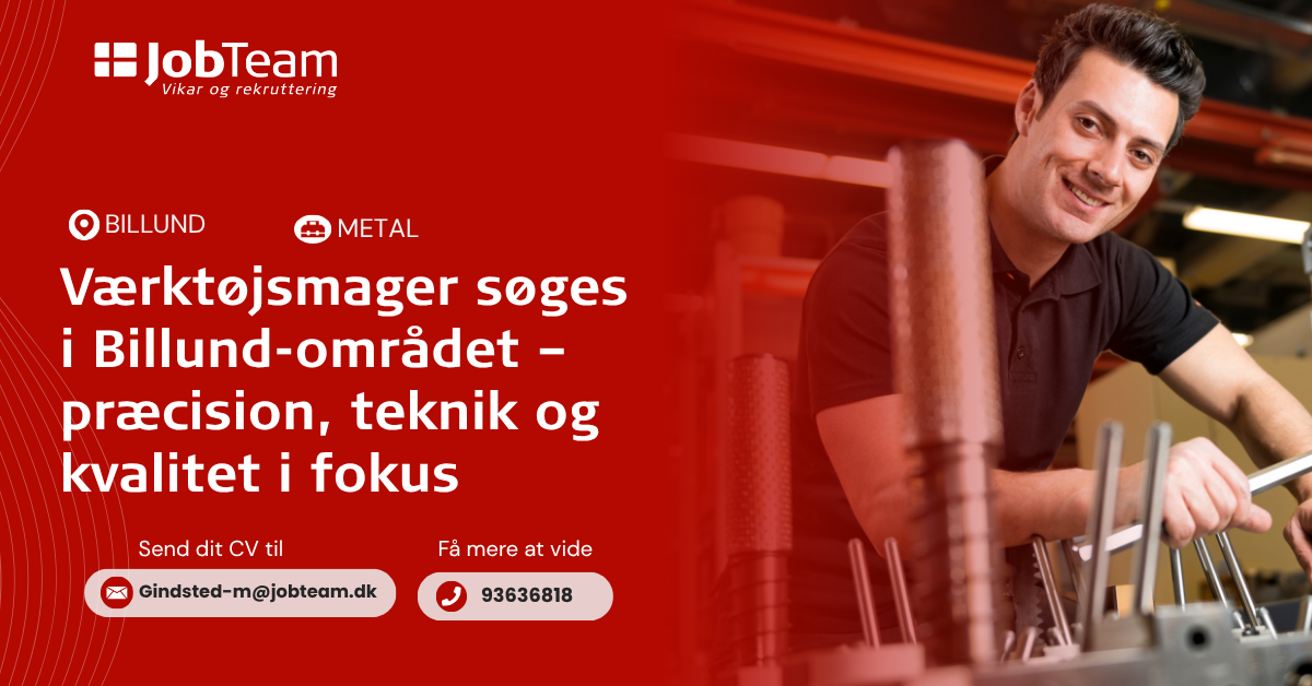 Send os dit CV på mail: grindsted-m@jobteam.dk mærket "Værktøjsmager"
