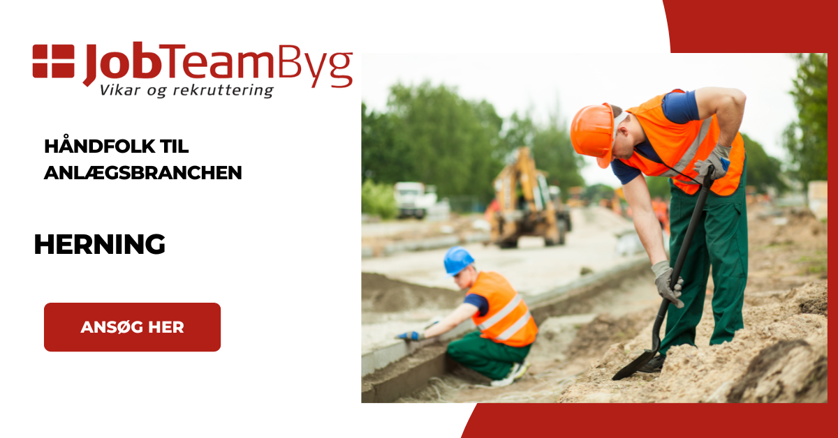 Hvis du er interesseret i at arbejde som håndmand/kvinde på byggepladsen og har den rette indstilling og arbejdsmoral, så send din ansøgning og dit CV til Herning-b@jobteam.dk