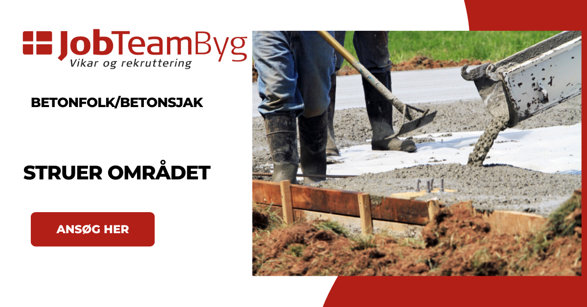 På udkig efter et job, hvor du kan sætte dit præg på byggebranchen? Vores samarbejdspartner nær Struer er i vækst og leder efter en dygtig betonarbejder, der kan bringe sit håndværk og know-how til deres projekter. Kravet til dig er at du har erfaring med betonarbejde, har kørekort samt er arbejdsom og effektiv.