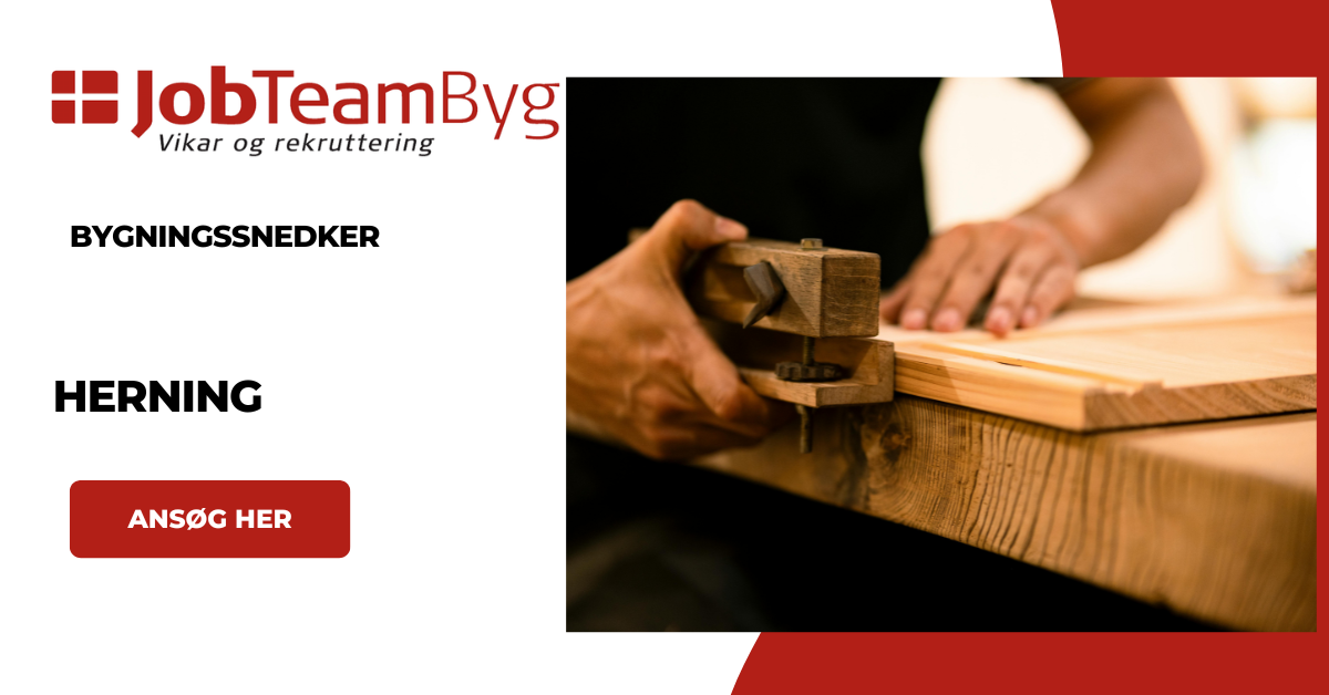 Vi søger en dygtig og erfaren bygningssnedker til at udføre serviceopgaver ved vores samarbejdspartner nær Herning, som er i vækst. Som bygningssnedker vil du få mulighed for at arbejde på spændende opgaver, og blive en del af et engageret team af fagfolk. Kravet til dig er at du er faglært bygningssnedker samt har hænderne skruet rigtigt på. Derudover skal du være kundeorienteret, have øje for detaljer samt være arbejdsom.