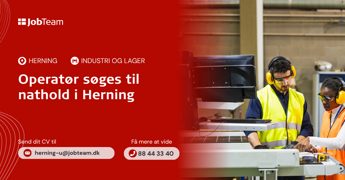Lyder jobbet som noget for dig? Så send os dit CV på herning-u@jobteam.dk, mrk. "HEU-U16-D4"