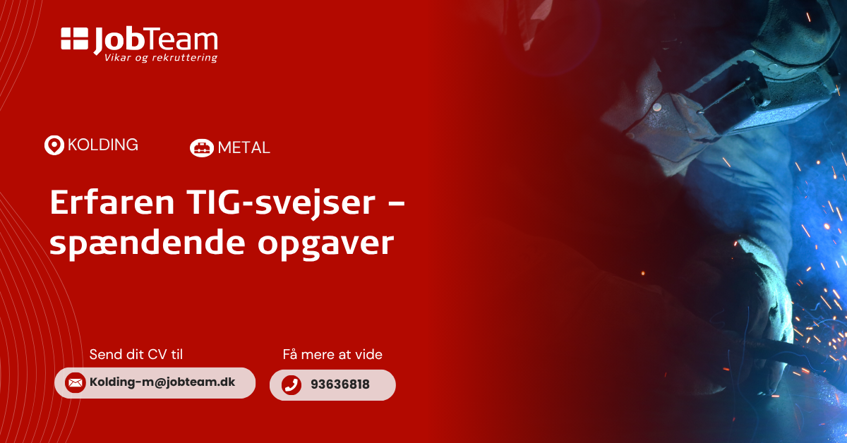Lyder dette som noget for dig? Send dit CV til kolding-m@jobteam.dk mærket "TIG-svejser".