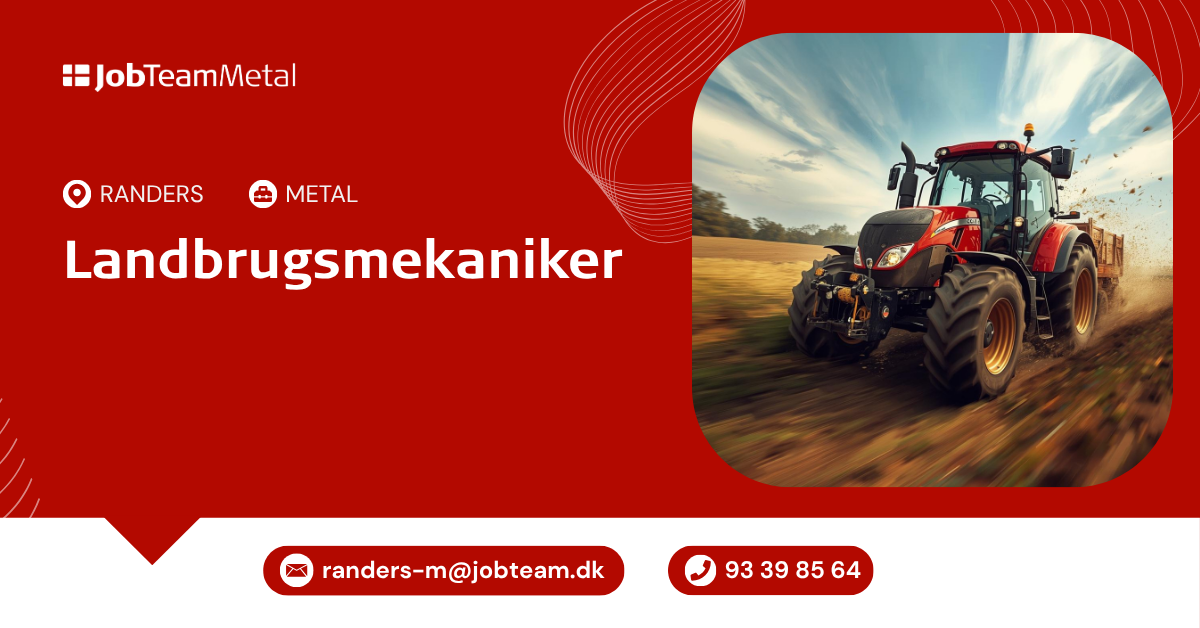 Kontakt os på mail: randers-m@jobteam.dk mærket med "Landbrugsmaskinmekaniker"
