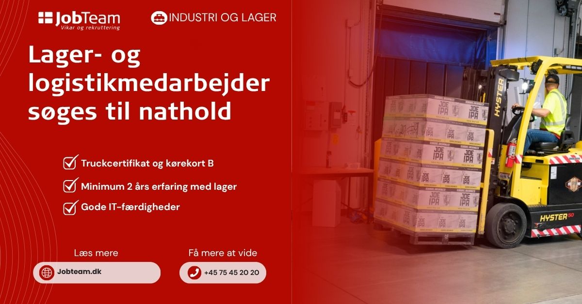 Vi søger en erfaren lager- og logistikmedarbejder til nathold nær Randers C, der kan håndtere varer, sikre korrekt lagerstyring og pakke ordrer præcist. Kravet til dig er at du har minimum 2 års erfaring med lagerarbejde samt har truckcertifikat og kørekort B. Derudover er det en fordel hvis du har erfaring med natholdsarbejde, dog ikke et krav, så længe du er indstillet på at stillingen er på fast nathold.