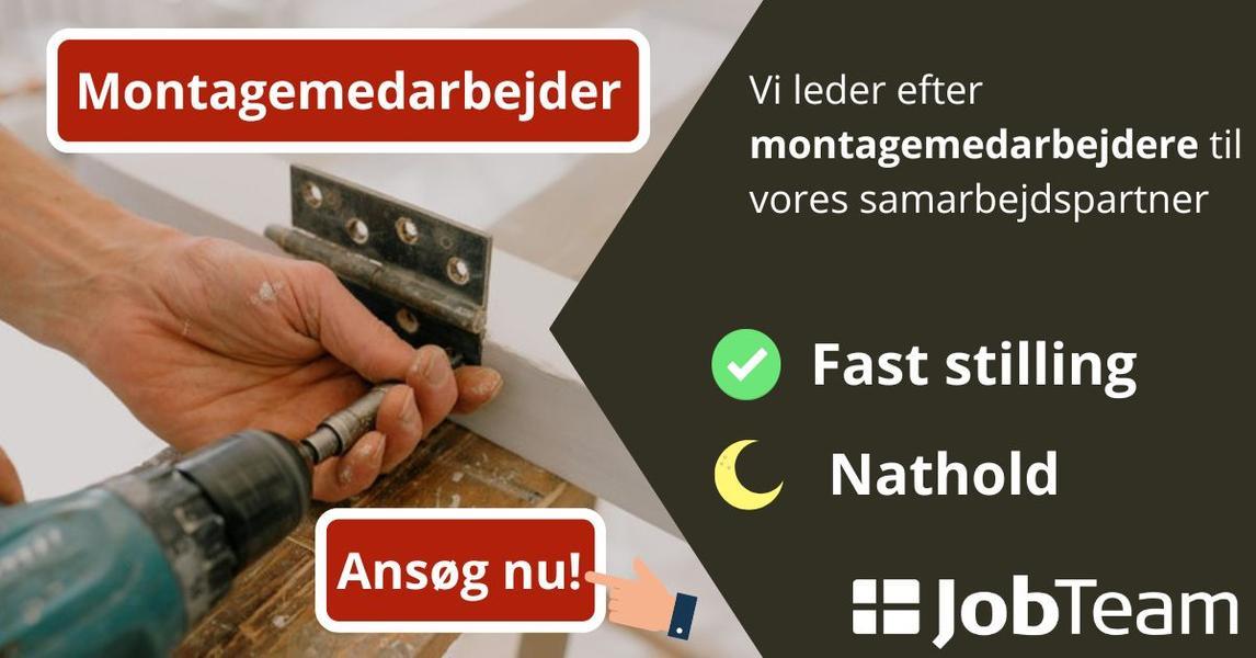 Montagemedarbejder med hænderne skruet rigtigt på søges på nathold nær Randers!