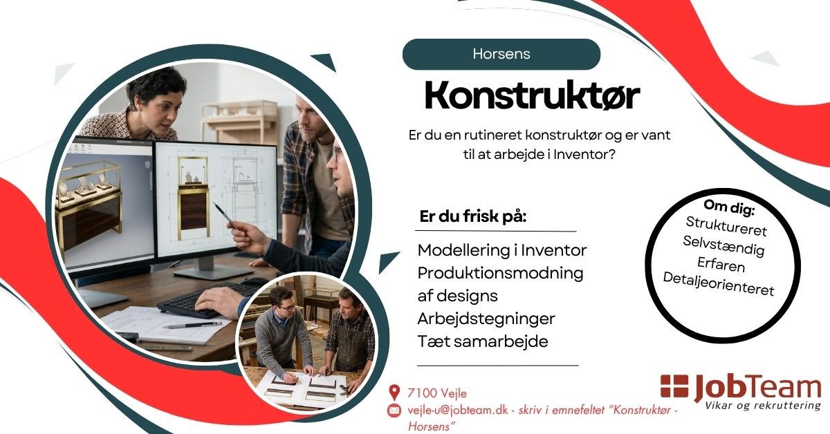For en ambitiøs og vækstende inventarproducent i Horsens søger vi en teknisk stærk konstruktør. Virksomheden er kendt for sit høje kvalitetsniveau og specialiserer sig i specialinventar til high-end butikker. Der er tale om et Try & Hire-forløb med henblik på fastansættelse for den rette kandidat.