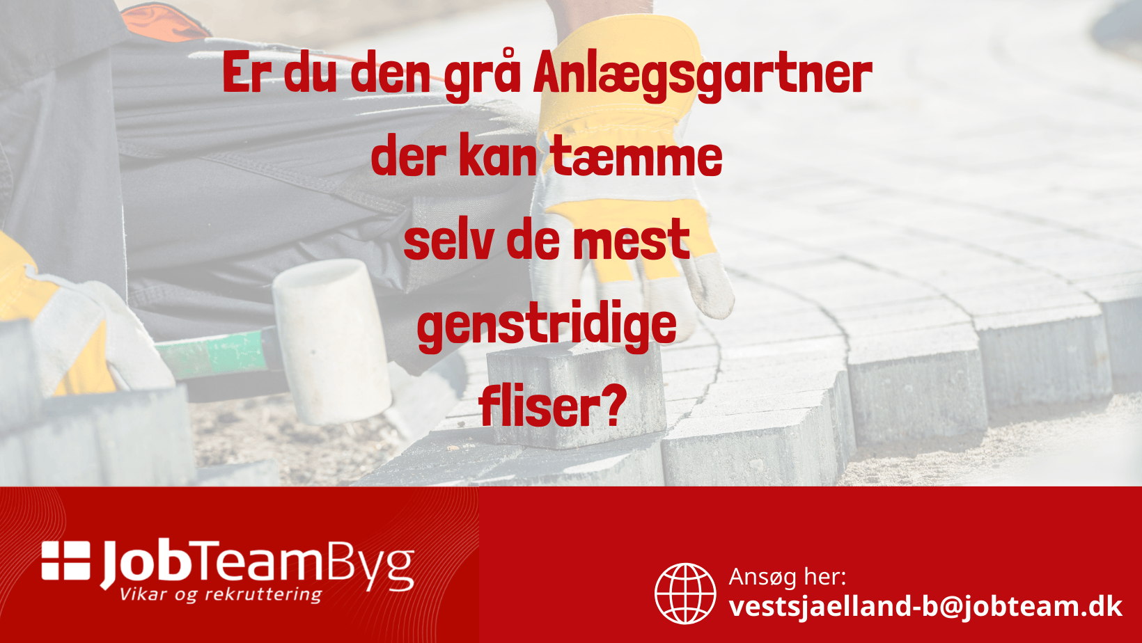Vi søger en dygtig grøn anlægsgartner til vores samarbejdspartner i Sorø. Her får du mulighed for at arbejde med spændende projekter, hvor kvalitet, detalje og bæredygtighed er i fokus.
