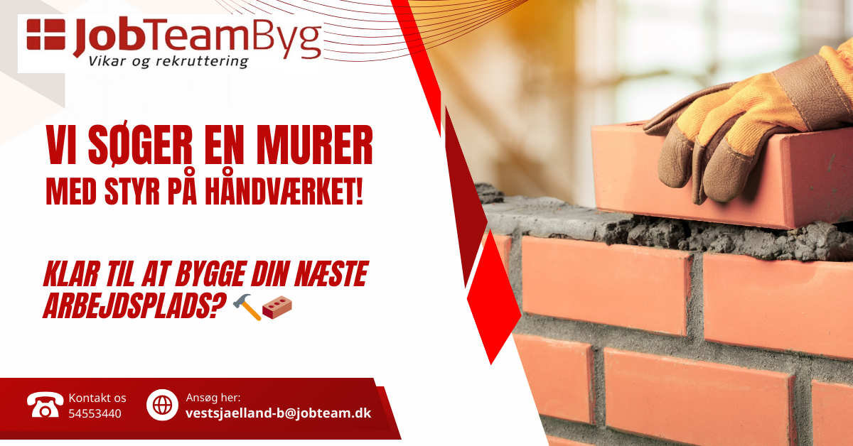 Send dit CV til vestsjaelland-b@jobteam.dk og mærk "Murer til byggeplads Ringsted"