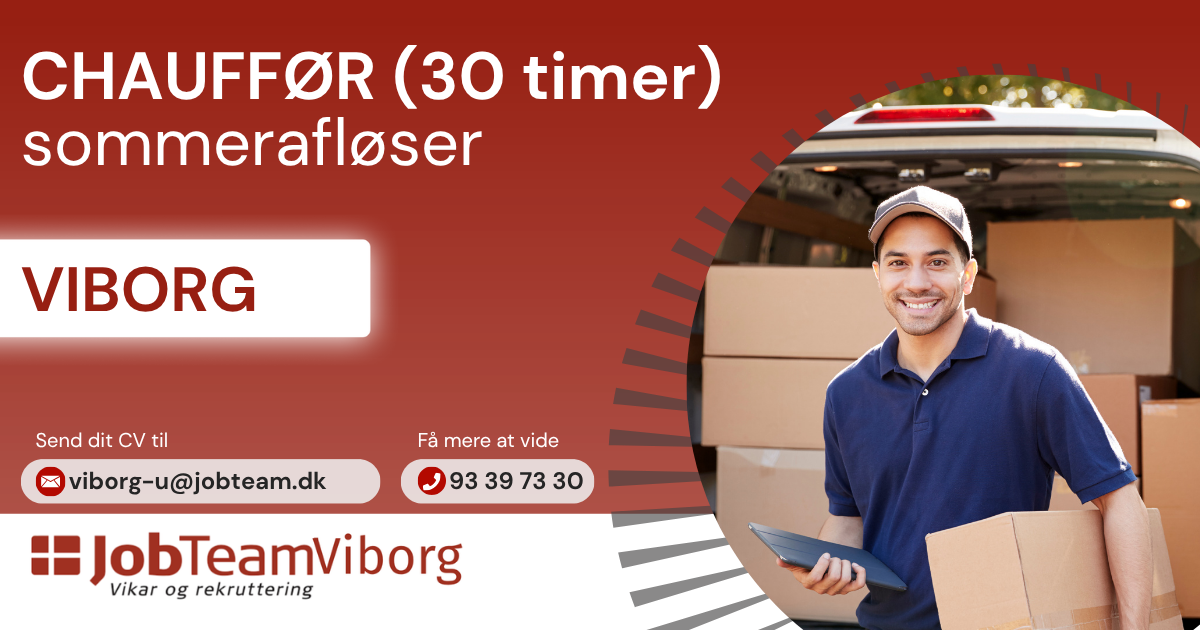 Til en virksomhed i Viborg søger vi en pålidelig og ansvarsbevidst chauffør til et vikariat, så de faste chauffører kan afholde sommerferie.