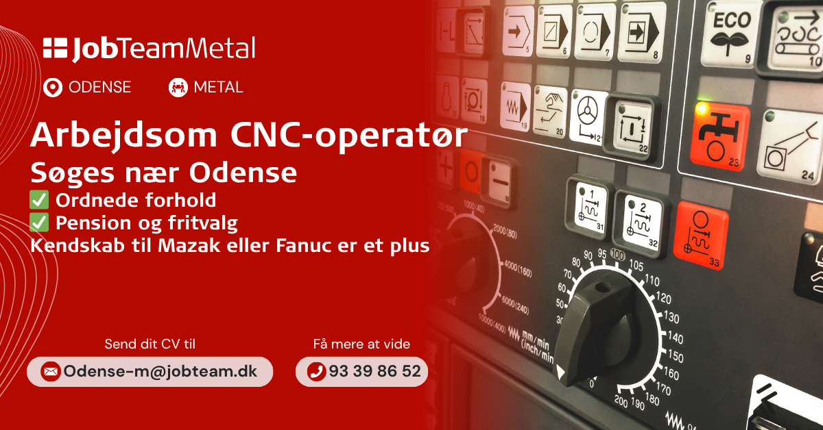 Så kontakt os på mail: odense-m@jobteam.dk, mærket "2617-CNC-DD"