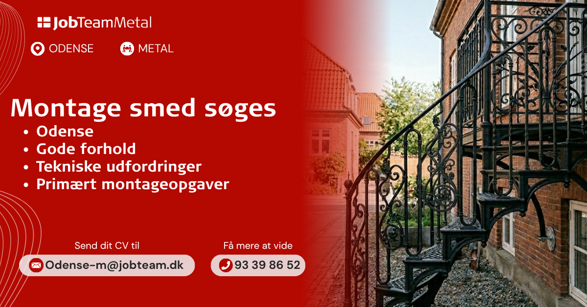 Vi søger dig, som har erfaring med svejsning og montagearbejde. Du skal derfor have hænderne skruet rigtigt på samt være kvalitetsbevidst. Dine arbejdsopgaver vil være montage af metal- og stålkonstruktioner, reparation og vedligehold, kvalitetssikring samt svejsning i sort når der er behov for det.