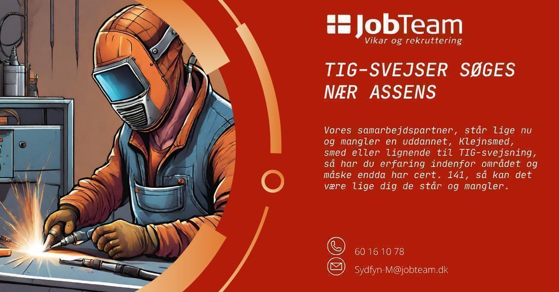 Er det dig vi søger, så skynd dig at sende en mail til Sydfyn-M@jobteam.dk, mærket "TIG-svejser"