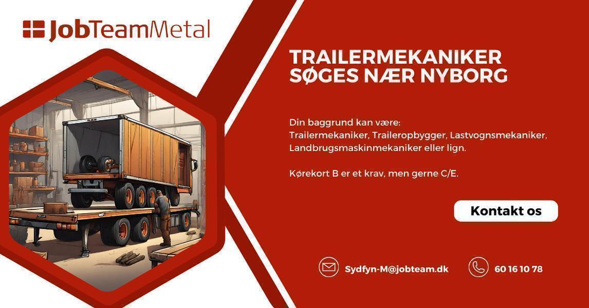 Kontakt os på mail: Sydfyn-M@jobteam.dk, mærket "Trailermekaniker"