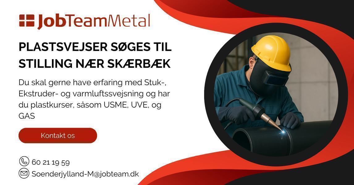 Kontakt os på mail: soenderjylland-m@jobteam.dk, mærket med "Plastsvejser"