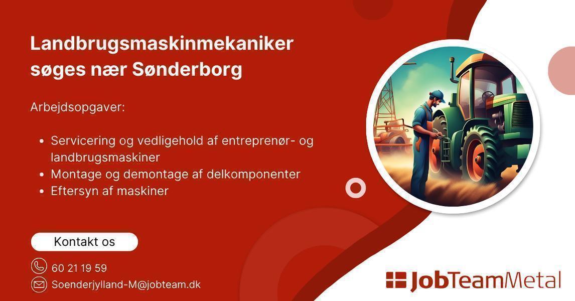 Kontakt os på mailadressen Soenderjylland-M@jobteam.dk, mærket med "Landbrugsmaskinmekaniker".