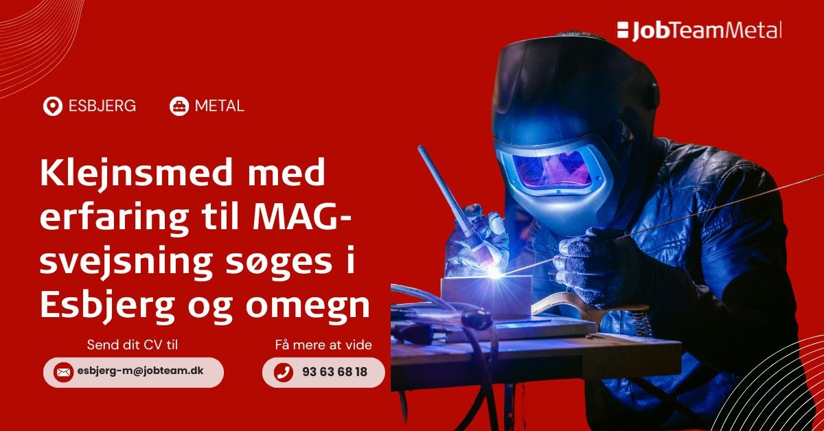 Vi beder dig kontakte os mail: esbjerg-m@jobteam.dk, mærket med "MAG-Svejser"