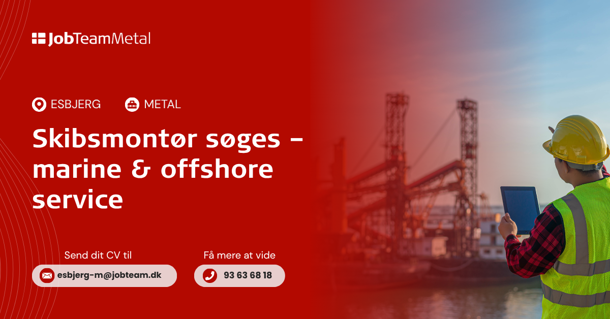 Til vores samarbejdspartner nær Esbjerg søger vi en skibsmontør, som har hænderne skruet rigtigt på.
